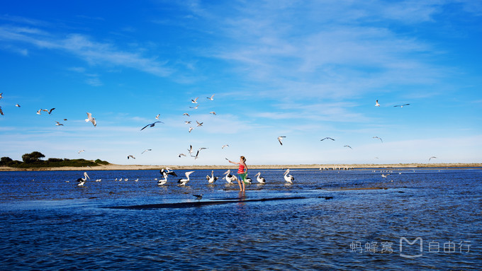 房车公园了到处都是鸽子,大人们晒着太阳,看着孩子们跟鸽子玩。