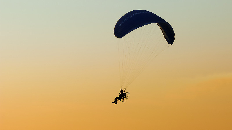 【印象】动力滑翔伞,是一种新型的飞行器,安全性高,易学易驾驶,轮式动力伞的出现使广大群众有机会以最安全和最容易的方式去体验飞行,动力伞是飞行器中最安全的一种,即使空中停车也能象滑翔伞一样滑翔降落,轮式应比背式会更安全一点,因为着陆是有避震缓冲设置。