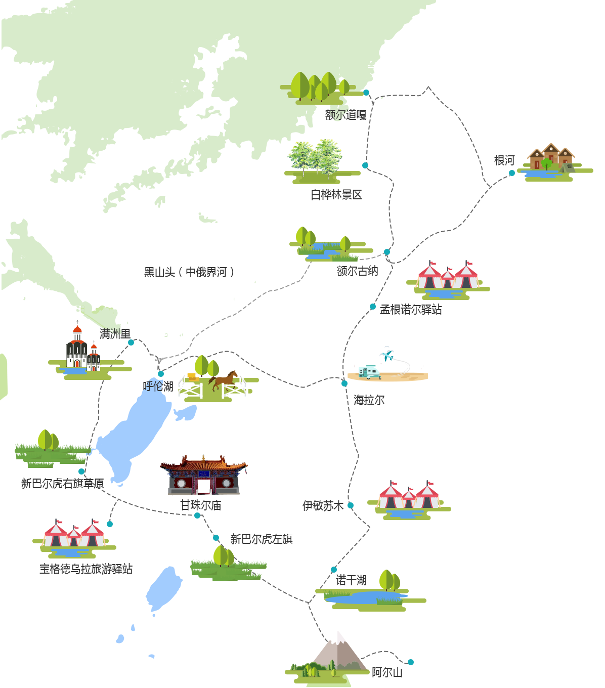 1、本产品组合只支持呼伦贝尔出发。