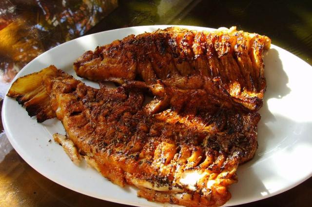 【味道】说起怀柔虹鳟鱼,京城吃货里几乎无人不晓。而近两年新兴的怀柔鲟鱼其实也是不错的选择哦!虽然同为冷水鱼,但与虹鳟鱼只适合生吃、不适合蒸的特点相比, 鲟鱼有很大不同。鲟鱼没有刺,且从鱼头、鱼唇、鱼肉、鱼骨头甚至到鱼腮全部都可以吃。做法也很灵活,红烧、清蒸、滑熘、煨汤、炖煮都行,吃鲟鱼的时候是要细细品味的, 品味鱼香、辣香,感受一种鱼的不同味道。鲟鱼身体两侧有两条筋据说,它身上最好吃的就是这两条筋,其次是鱼头,最后才是肉。